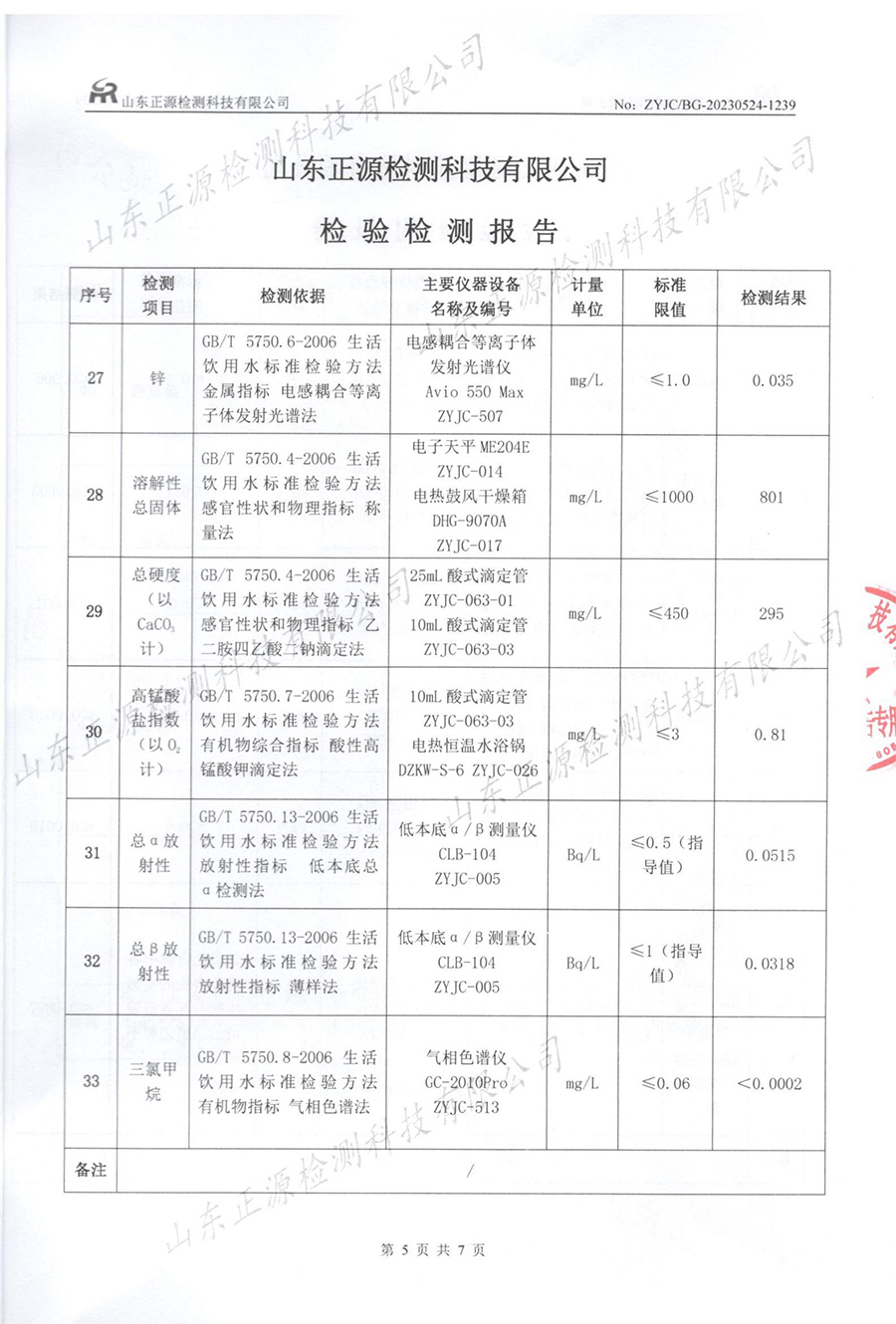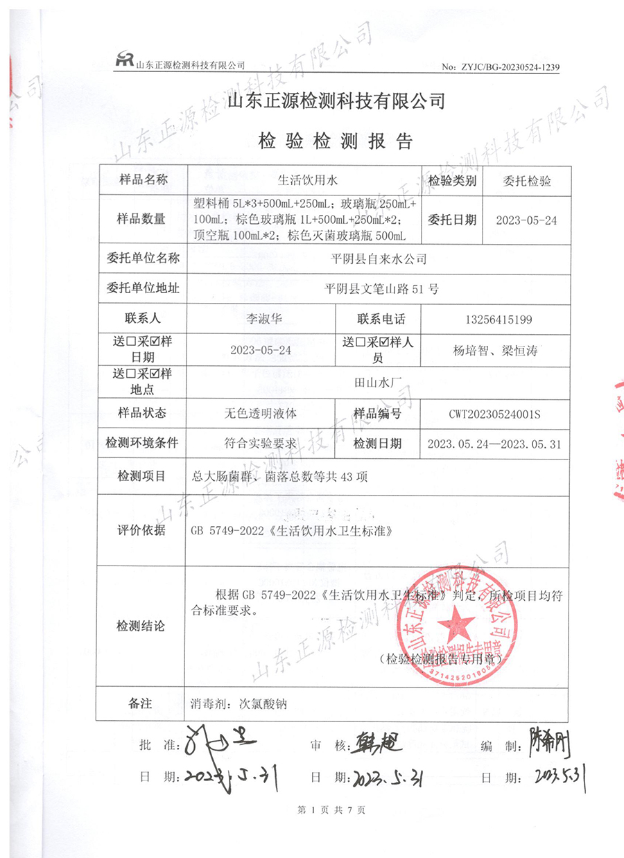 水质检测报告(2023.5.24—2023.5.31生活饮用水)