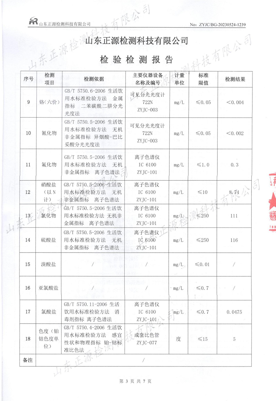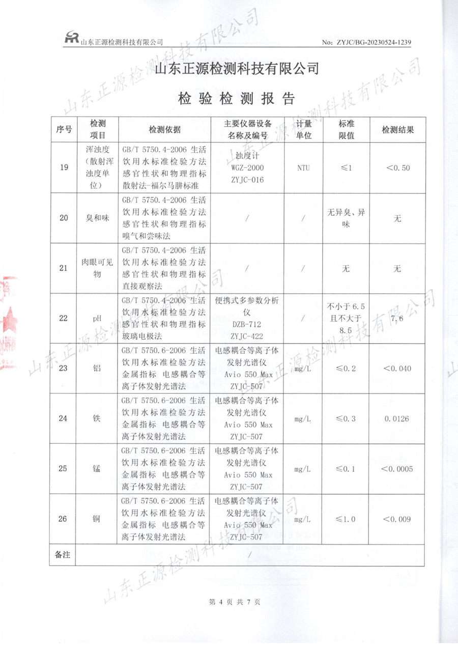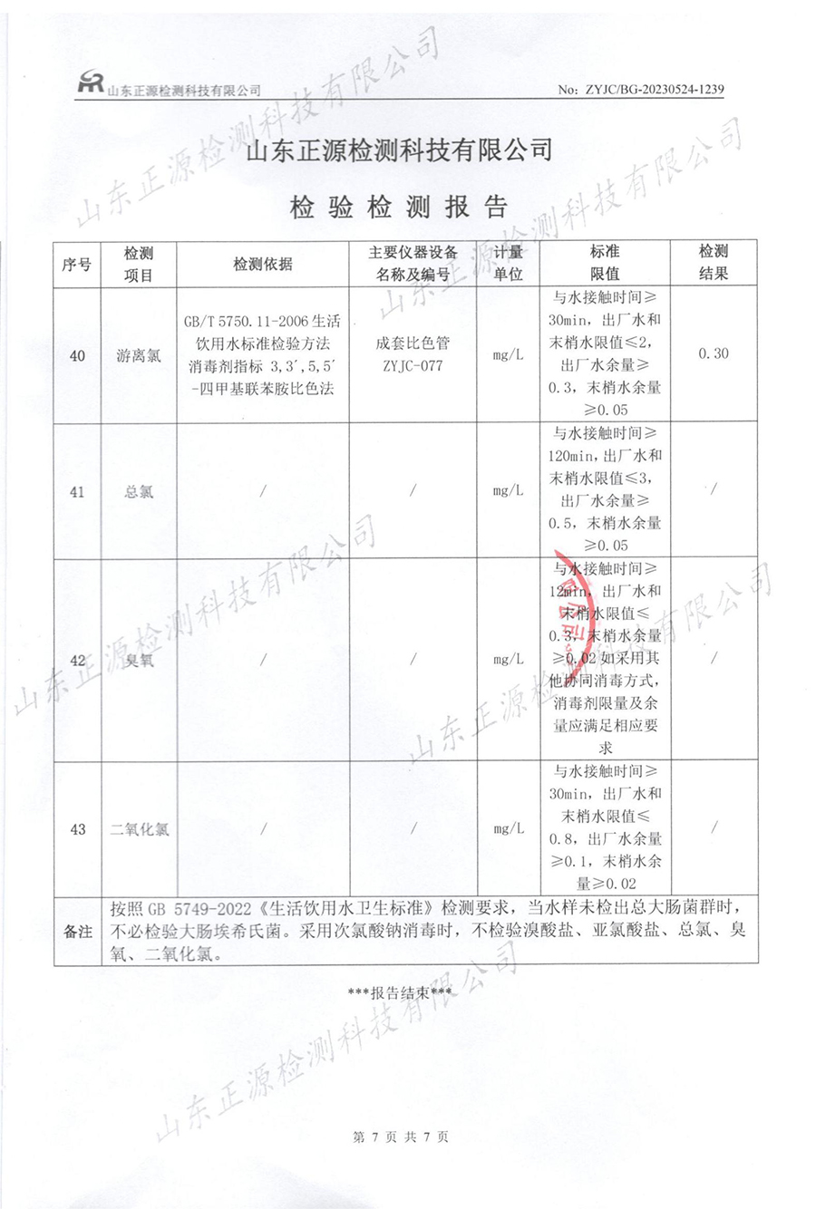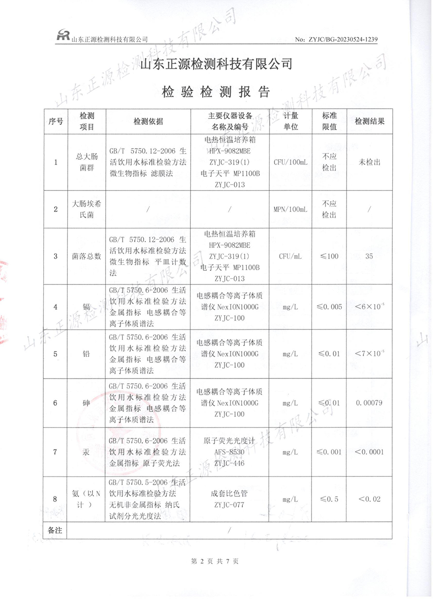 水质检测报告(2023.7.25生活饮用水)
