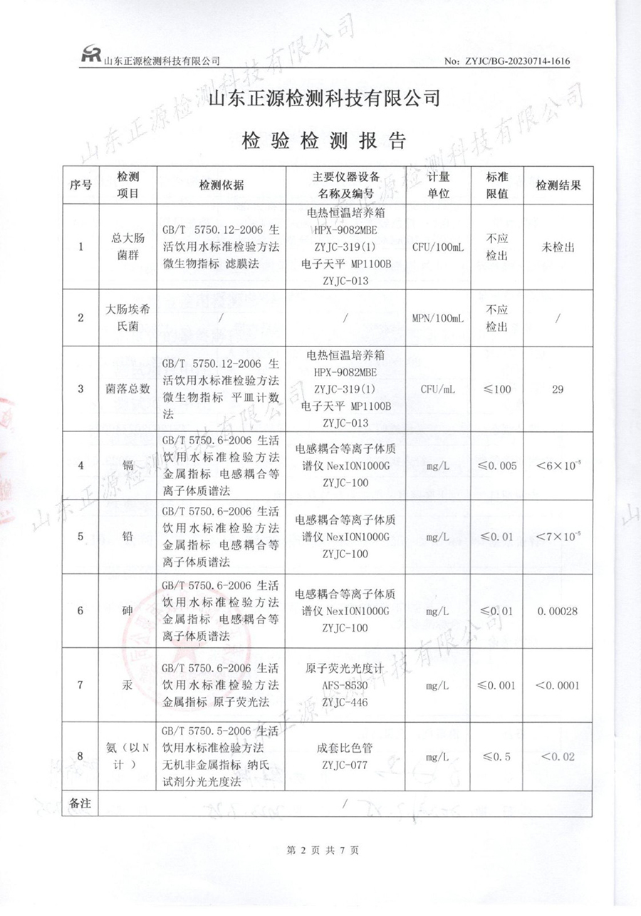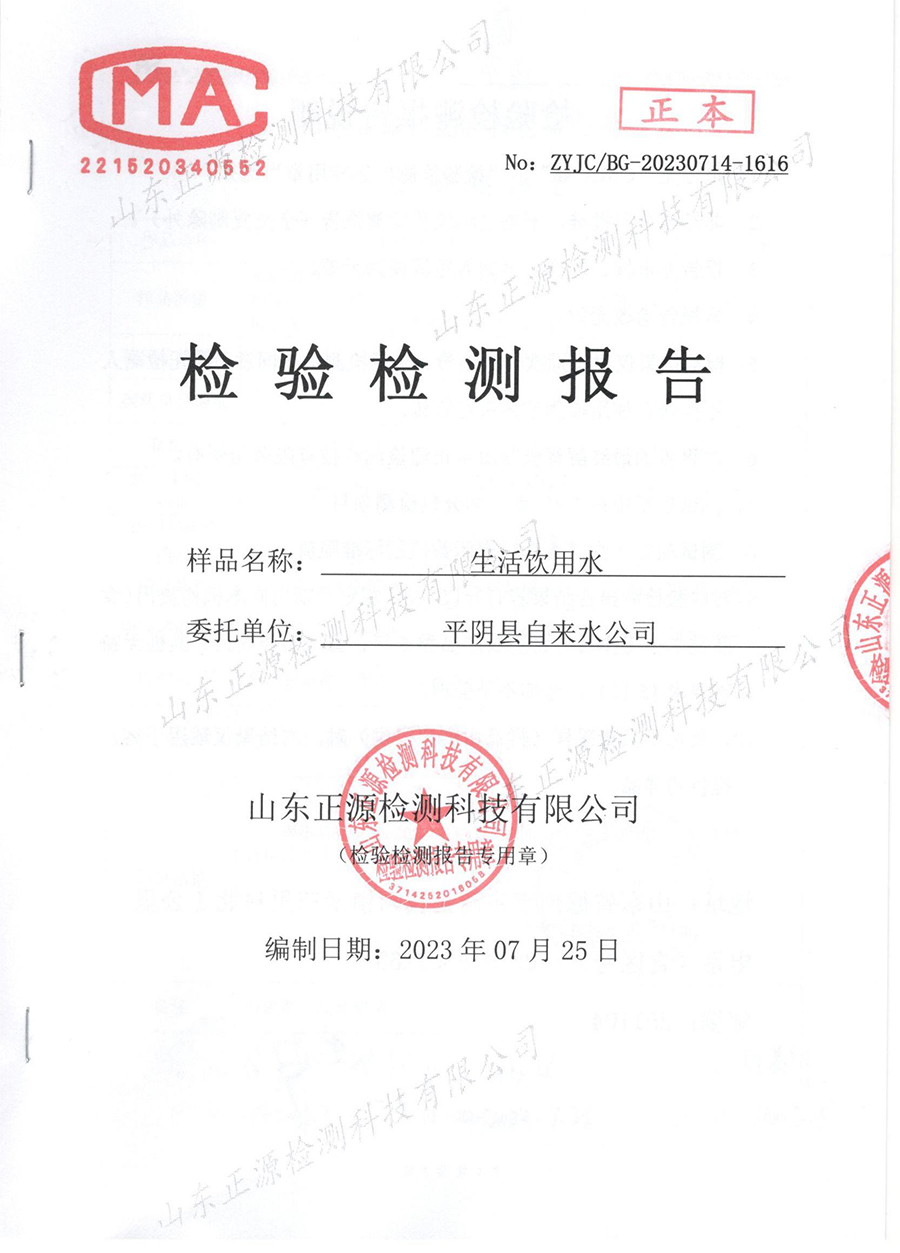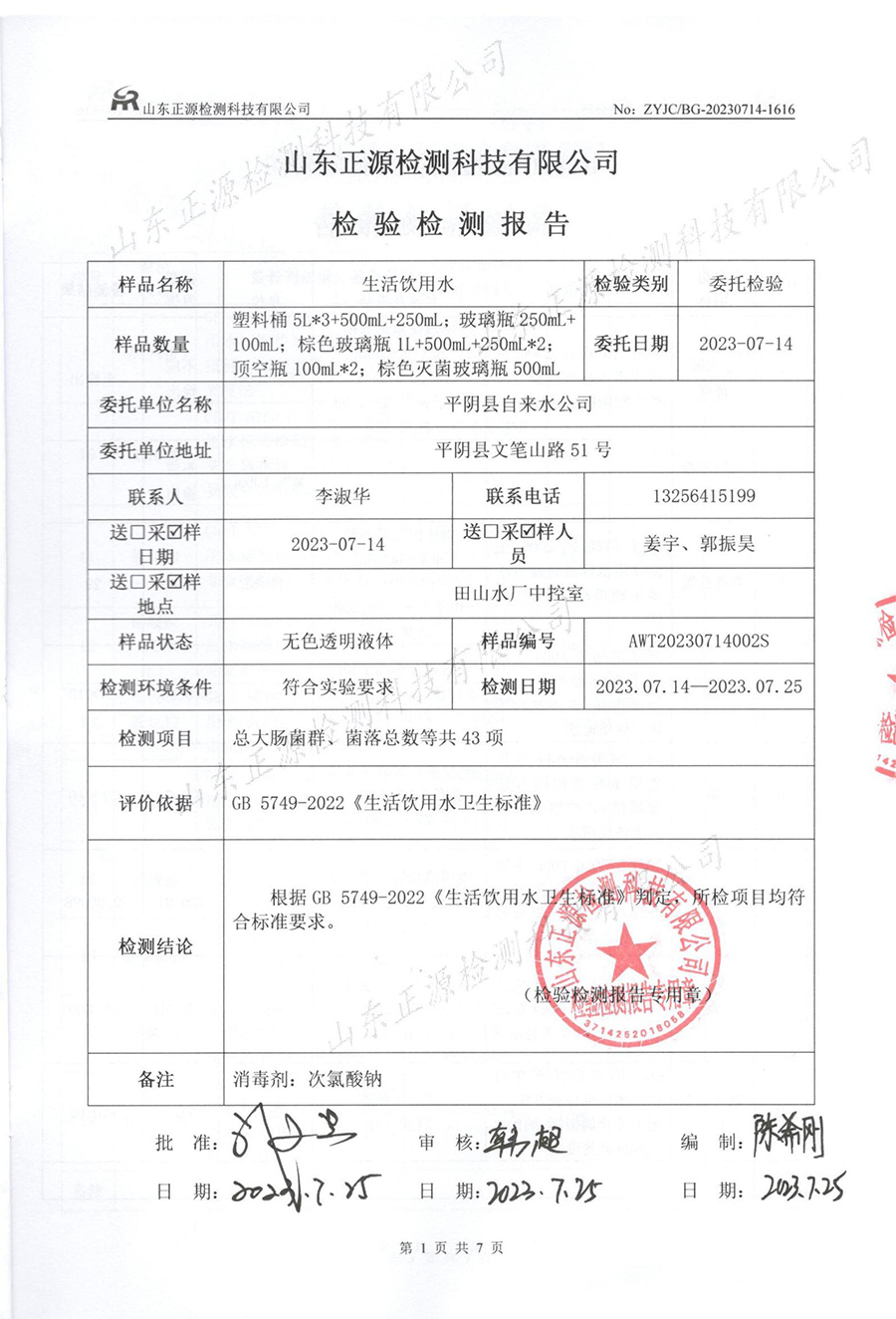 水质检测报告(2023.7.25生活饮用水)