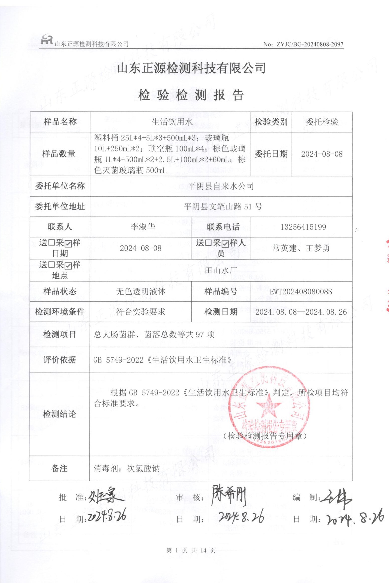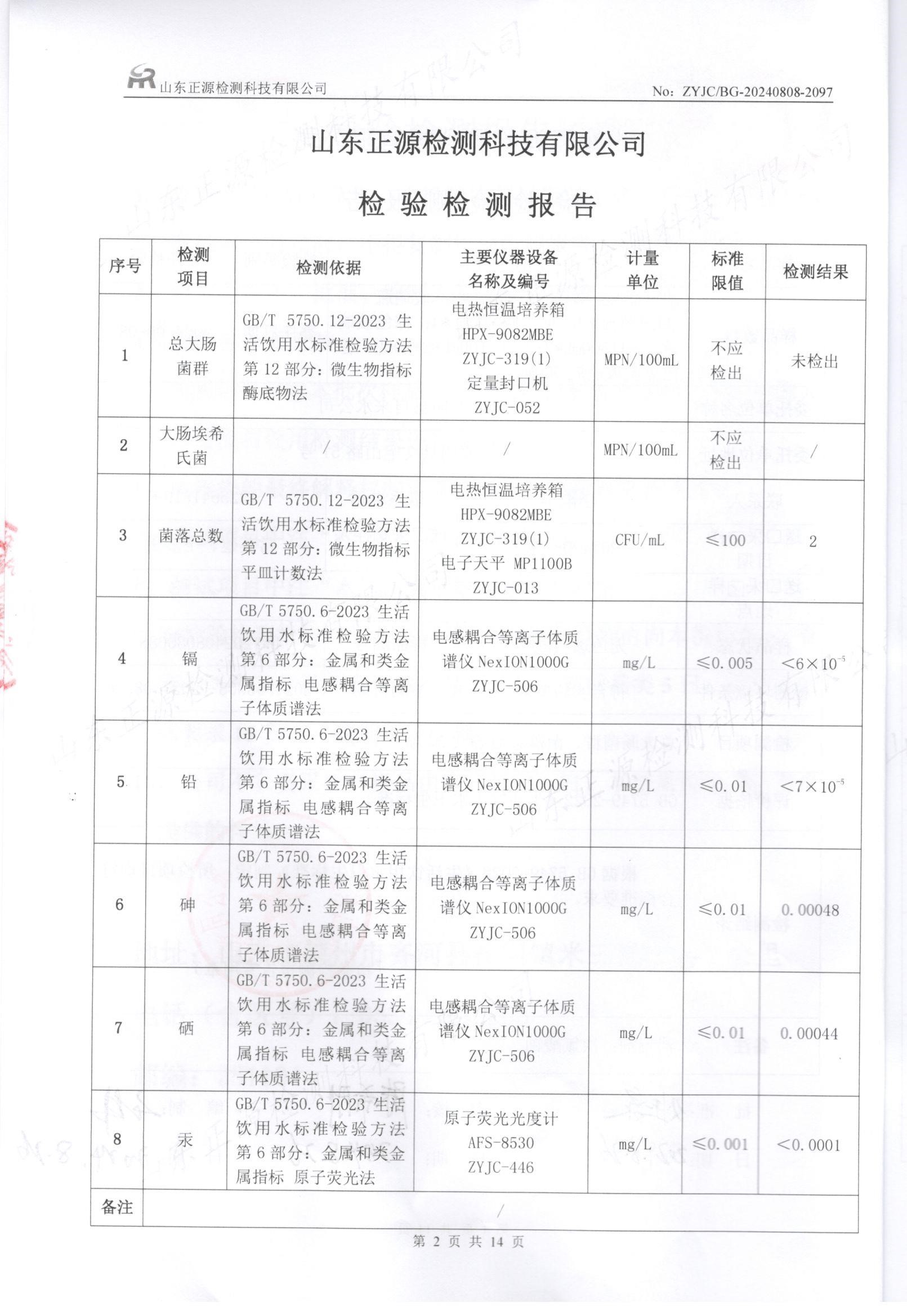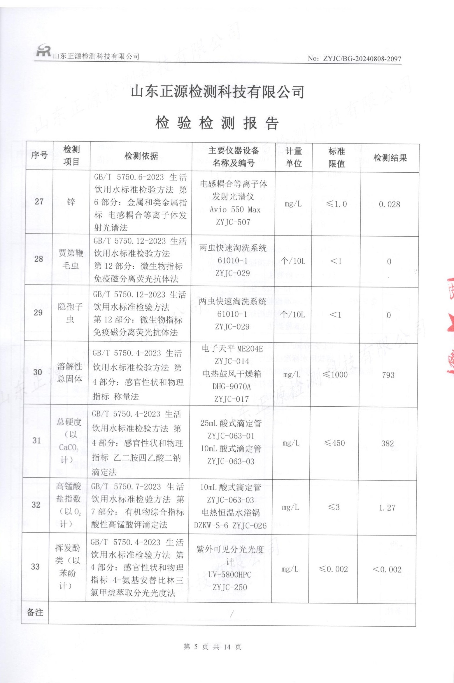 水质检测报告(2024.04.17-2024.04.27生活饮用水)
