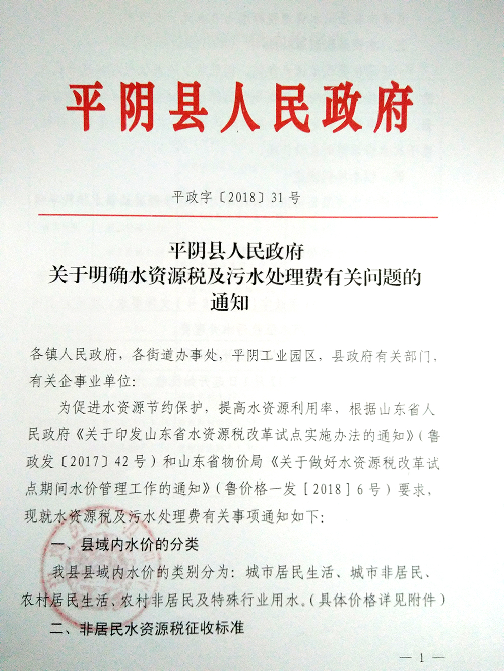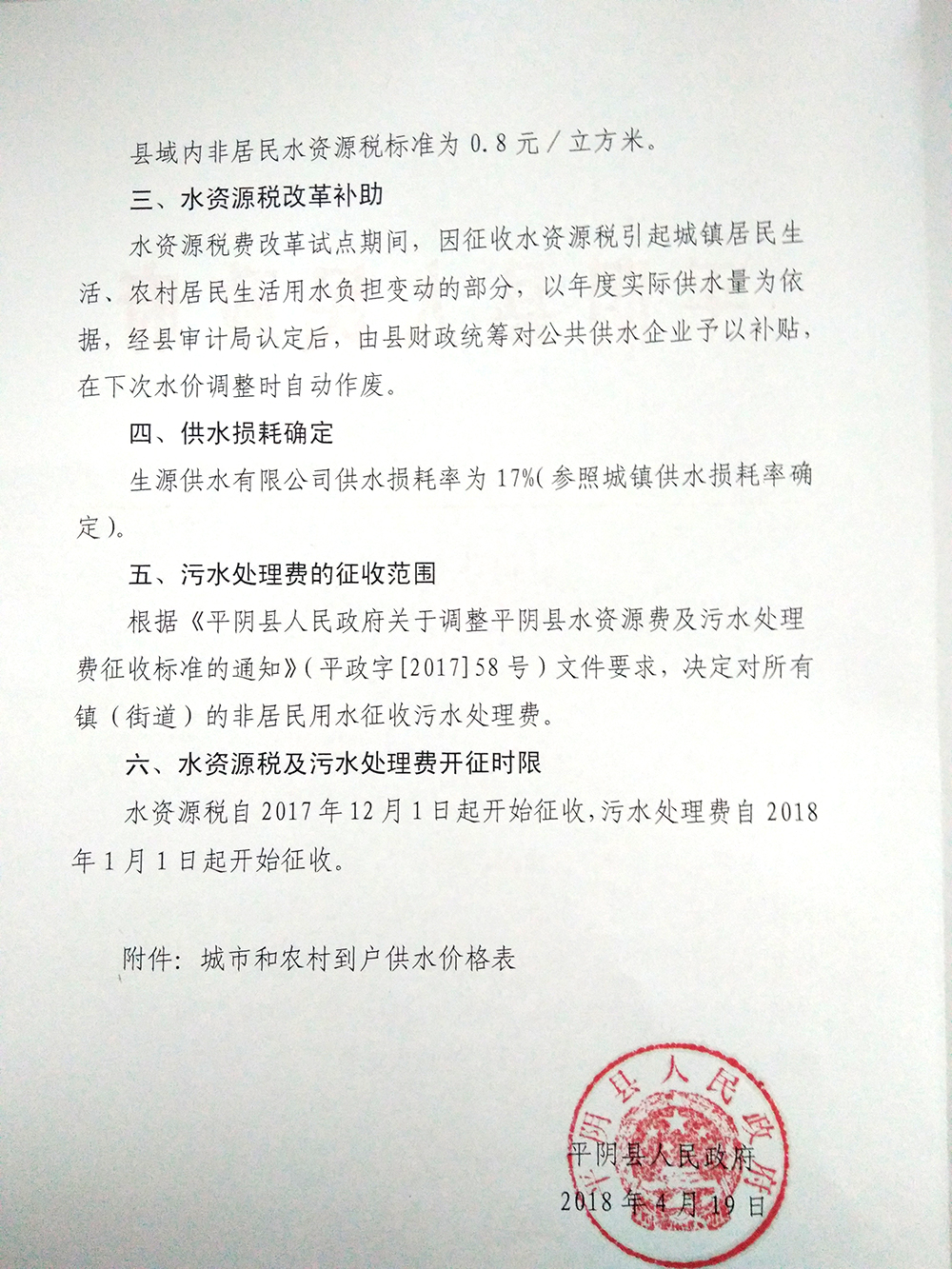 关于明确水资源税及污水处理费有关问题的通知